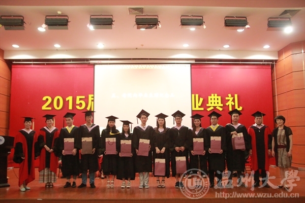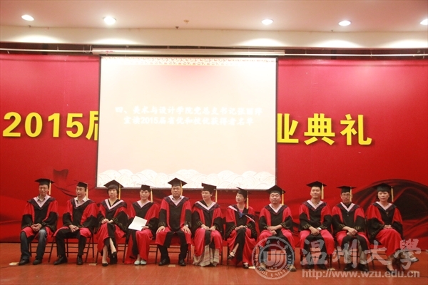 6月17日下午,麻豆视 在岩松堂雁山厅隆重举行2015届本科生毕业典礼暨学位授予仪式。出席典礼仪式的领导有:麻豆视 校长蔡袁强、麻豆视 院长李运河、党总支书记张丽萍、副院长谢子静、副院长王薇、办公室主任李丽、学生科科长叶如芳,美术系主任陈伟、设计系主任朱广宇、服装系主任陈明艳、教授舒湘鄂、教授魏静、教授邓国祥、教授李勋祥、教授蔡瑞蓉、博士张晓剑。此外,全体毕业班班主任、教师代表、全体毕业班同学参加了本次典礼。学院党总支副书记杨振海主持典礼。 首先,进入第一篇章《只如初见 恍如昨日》,主要有电子相册的播放、微电影《献给毕业的你》、以及诗歌朗诵《今天,我们毕业了》等内容。追忆四年,一幕幕场景、一段段音符,串连成一部画面与音乐交织的大学电影,播放着曾经的快乐与忧伤,记录着同学们曾经的青春与过往,也见证着拥有的友谊与深情! 随即进入第二篇章《青葱年代 凤凰花开》部分,学院副院长谢子静宣读了校优和院优毕业作品获得者名单,学院党总支书记张丽萍宣读了省优和校优毕业生获得者名单,院长李运河、书记张丽萍、美术系主任陈伟、设计系主任朱广宇、服装系主任陈明艳、教授舒湘鄂、教授魏静、教授邓国祥、教授李勋祥、教授蔡瑞蓉、博士张晓剑一一为他们颁奖、合影留念以资鼓励。 紧接着典礼进入第三篇章《亦师亦友 常忆相思》部分,学院为全体毕业生赠送纪念品——由美院学生原未手工皮具工作室制作的卡包。 为了更好的与毕业生保持联系,学院特意设立了各班级的校友联络员,学院副院长王薇宣读了名单,院长李运河、书记张丽萍为每位校友联络员颁发聘书。 接着,由省优毕业生11美本师范班马俪净代表2015届毕业生发言,她回忆了在温大的学习与生活经历,并表达了毕业生们即将离开的不舍和即将高飞的壮志。精彩的发言引起了在场毕业生们的共鸣,赢得了阵阵的掌声。 至此进入第四篇章《寄语明天情深道远》,院长李运河为2015届全体毕业生致辞!他祝愿大家以正确的世界观、人生观、价值观来指导自己的选择。志存高远,增长知识,锤炼意志,让青春在时代进步中焕发出绚丽的光彩,未来的自己,一定会感激现在努力的自己。 接着在校的学弟学妹代表为全体毕业生献唱《温大青年之歌》。 最后,典礼进入高潮部分,由麻豆视 校长蔡袁强为每位毕业生一一拨穗、颁发学位证书,并合影留念。这隆重的毕业典礼将成为每位学子心中最美好的回忆。祝福毕业生同学们明天更加辉煌灿烂!前程似锦!